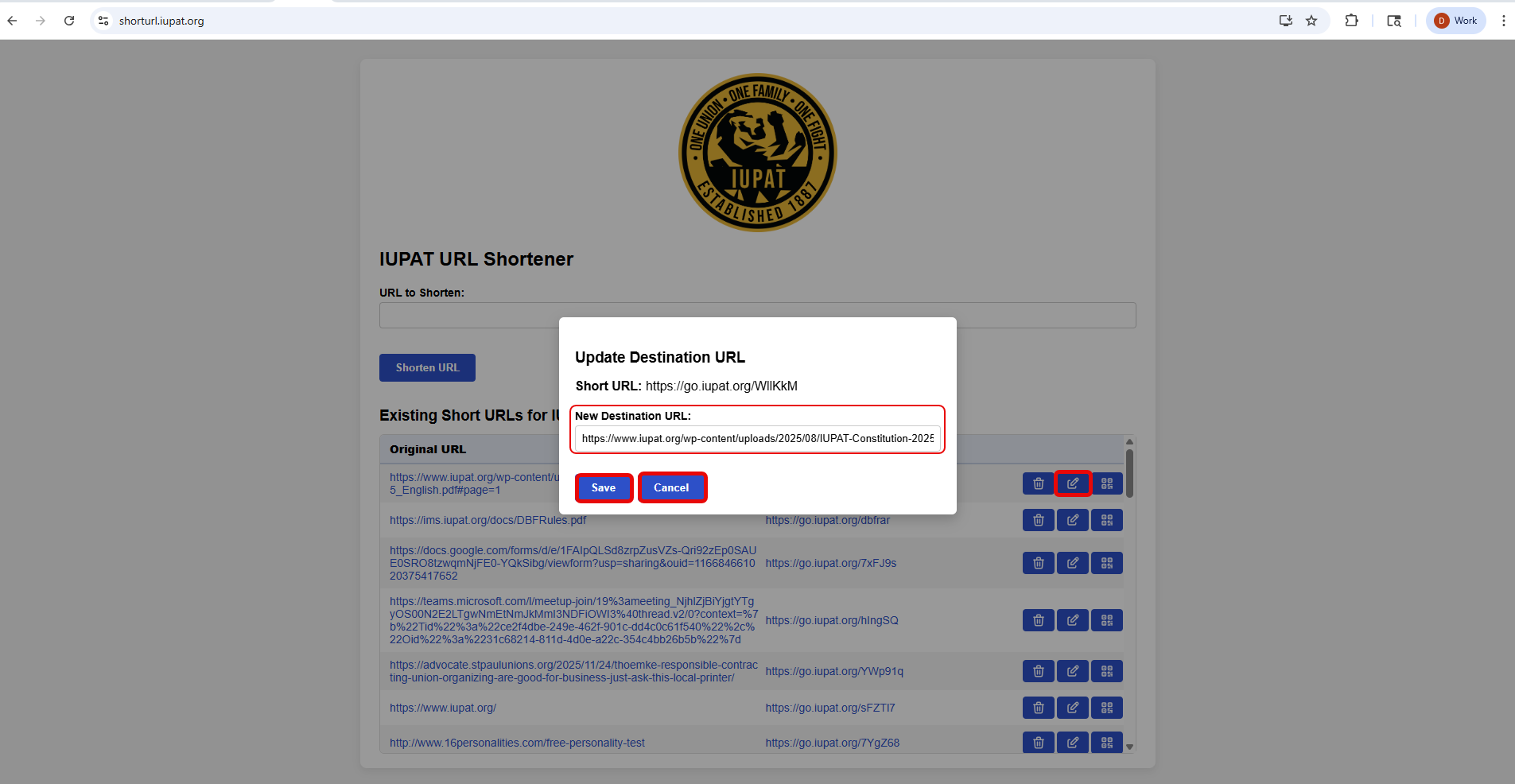 • Alternatively, you can directly open a new browser window and type in <https://shorturl.iupat.org>, then press Enter.