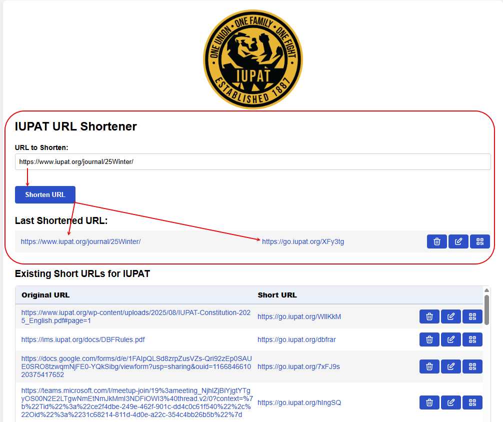 Accessing the IUPAT URL Shortener Tool: